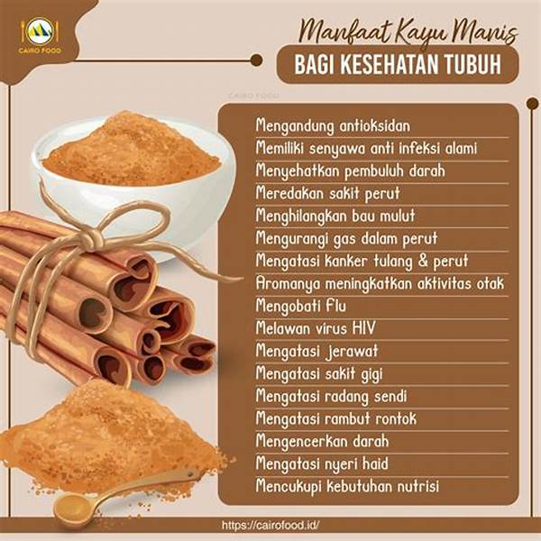 Di masa lalu, banyak peradaban kuno telah menggunakan kayu manis sebagai obat untuk berbagai penyakit. Hari ini, penelitian modern telah membuktikan bahwa ekstrak kayu manis dapat membantu mengendalikan kadar gula darah, menurunkan risiko penyakit jantung, dan bahkan melawan infeksi. Manfaat kayu manis untuk kesehatan menjadi semakin relevan di era modern, khususnya bagi mereka yang mencari solusi alami untuk masalah kesehatan sehari-hari. Misalnya, studi menunjukkan bahwa kayu manis dapat membantu mengurangi peradangan, meningkatkan fungsi otak, dan bahkan mengatasi masalah pencernaan. Bayangkan bagaimana rempah sederhana ini dapat membawa perubahan besar pada kesehatan kita!